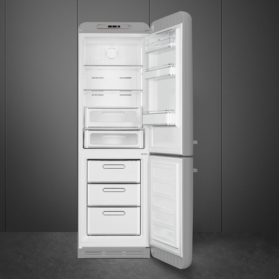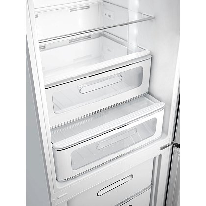 Холодильник SMEG FAB32RSV5 предназначен для кратковременного хранения различных готовых блюд, охлаждённых продуктов и напитков, а также для заморозки и длительного хранения замороженных продуктов и полуфабрикатов. Полки изготовлены из закалённого стекла, благодаря чему выдерживают большую нагрузку. Полки на дверцах выполнены из пластика. Данная модель идеально подойдёт для авторских интерьеров в уникальном стиле или для кухонь в классическом исполнении.