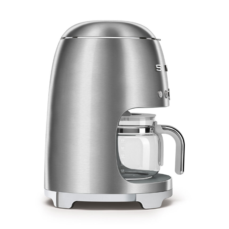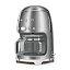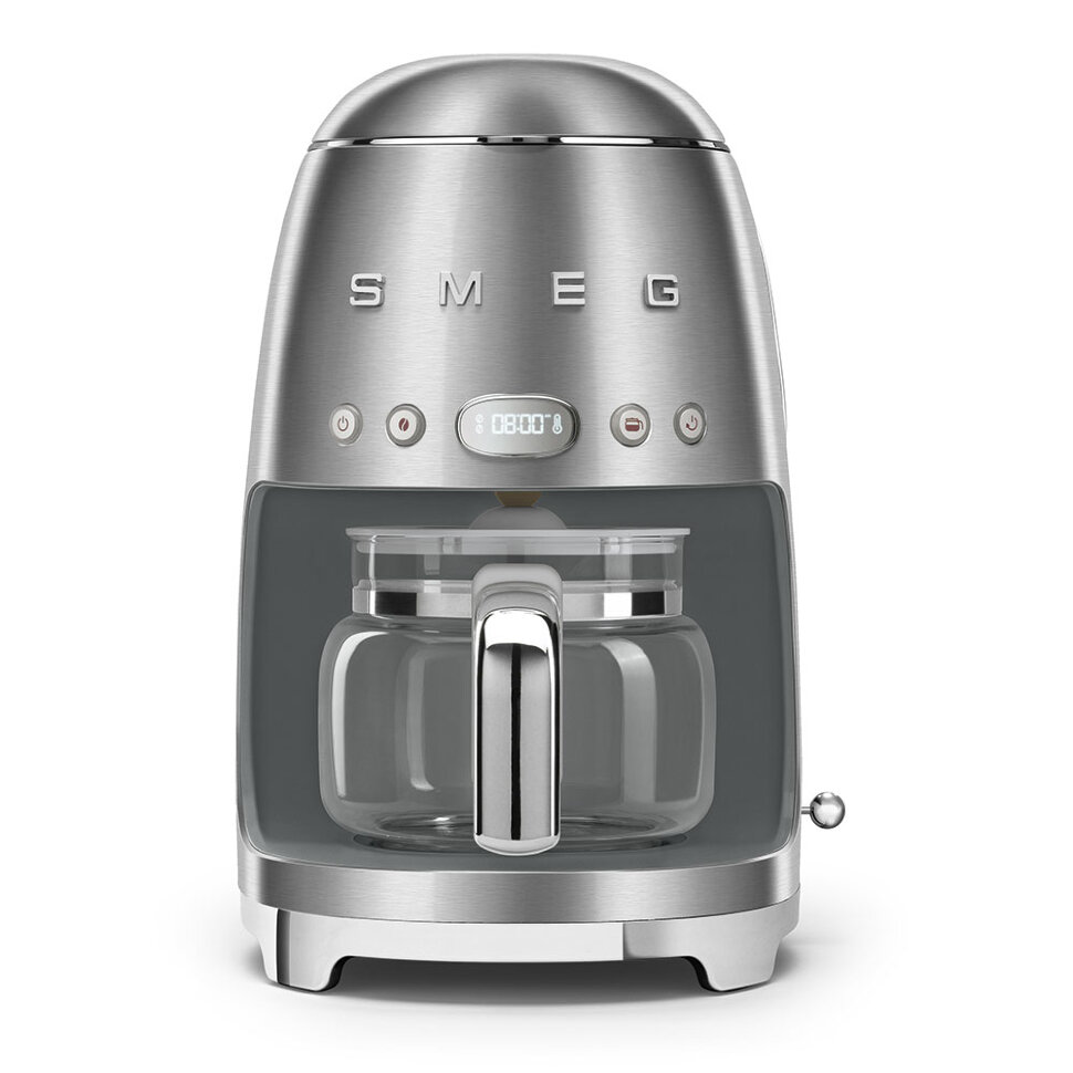 Капельная кофеварка SMEG DCF02SSEU, выполненная в стиле 50-х годов, подчеркнёт индивидуальность интерьера и станет настоящим украшением Вашей кухни в квартире или загородном доме. Предназначена для приготовления кофейных напитков разной крепости. Стеклянный кувшин рассчитан на 10 чашек, оборудован ручкой и крышкой. Корпус изготовлен из окрашенного металла.