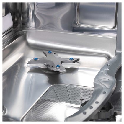 Специальный дополнительный разбрызгиватель установлен на дне камеры и отмывает посуду при более интенсивной подаче воды. Дополнительный разбрызгиватель лучше отмывает сильные загрязнения и пригоревшие загрязнения на посуде.