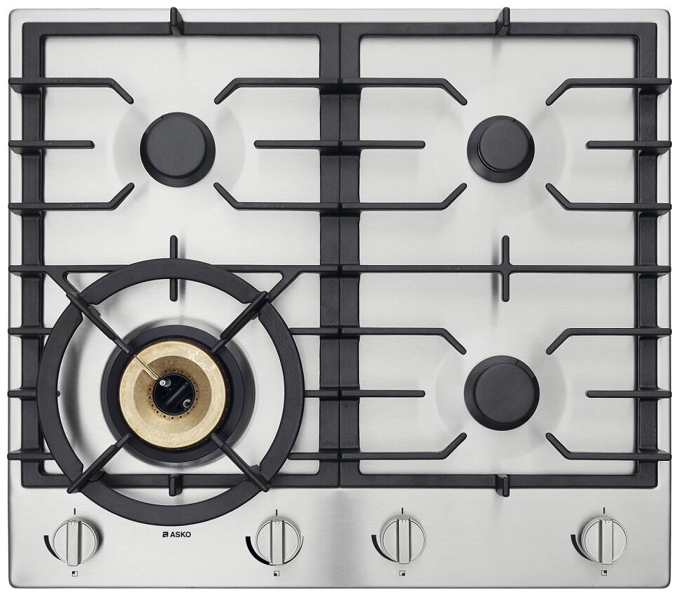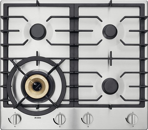Поворотные устройства управления расположены равномерно по всей ширине варочной панели Аско HG1666SB, чтобы исключить риск соприкосновения с горячей посудой. Включение и управление газом осуществляется механическими поворотными ручками. Для приготовления блюд оборудование располагает 4 конфорками — одна мощностью 1 кВт, две мощностью 2 кВт и одна 4,2кВт. Последняя из них обладает тремя кольцами пламени. Вы сможете создать атмосферу ресторана на домашней кухне и готовить блюда азиатской кухни в специальных сковородах-вок, использовать казан и другую посуду с толстыми стенками.